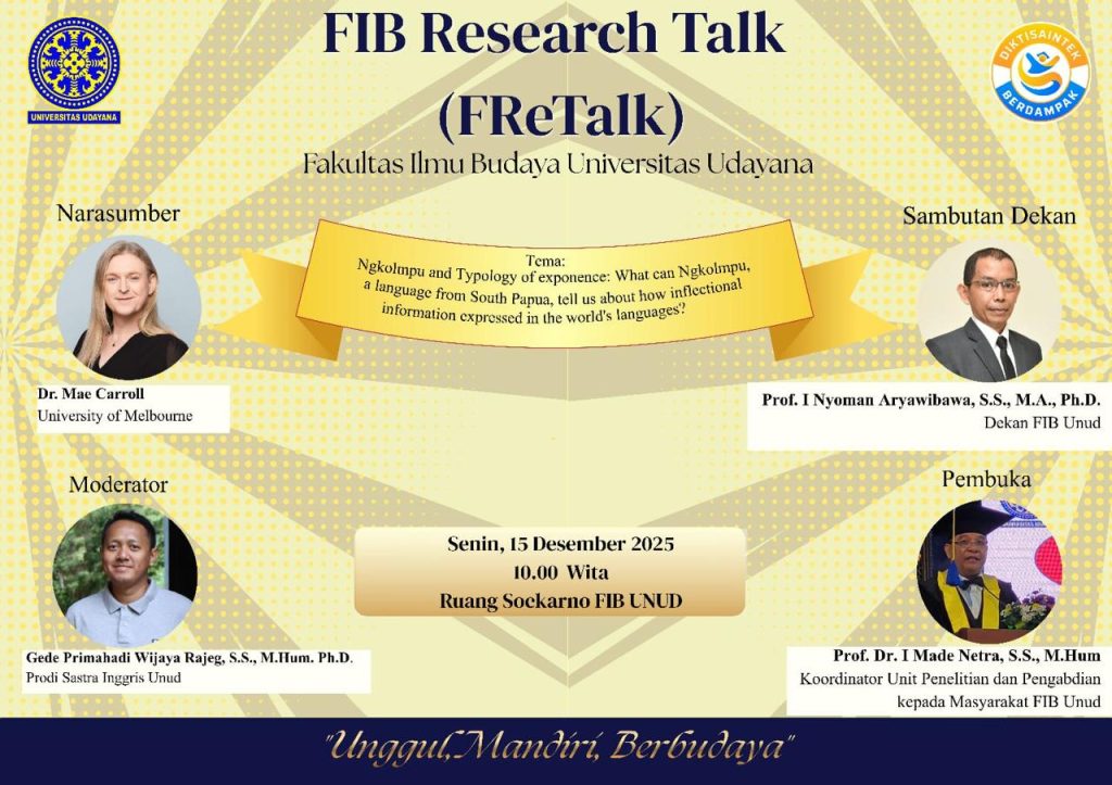 Dr Mae Carroll from the University of Melbourne as well as CIRHSS research affiliate will be giving a talk (Monday 15 December 2025 10:00 AM) at the Fakultas Ilmu Budaya Research Talk (FReTalk) series organised by the Faculty of Humanities, Udayana University. Abstract, the title, and the flyer for the talk are provided below.