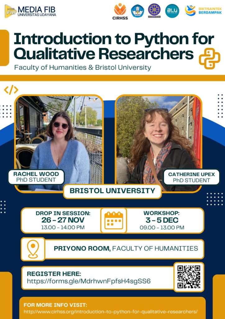 As follow up to the OCSEAN Secondment, OCSEAN with CIRHSS and Udayana University will be holding a workshop in the Faculty of Humanities, Udayana University, Bali with the help of two speakers from University of Bristol, UK. Participants will be able have their first hand experience in using Python as part of their research analysis.